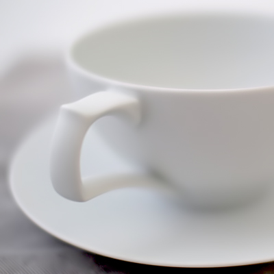 ▲ 口の広いオーソドックスなカップに、スタイリッシュなハンドルがついたティーカップ&ソーサーです。