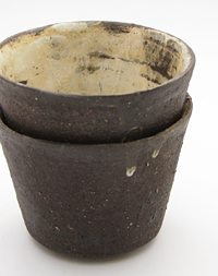 ⇒ カップの外側は『黒陶』の土を使い『焼〆』風に仕上げています。