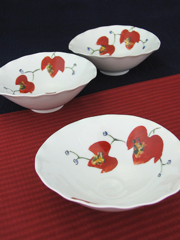 ⇒ 清潔感のある白磁に、鮮やかに映える赤い葉がオシャレです。