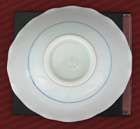 高台は低めに押さえ安定感を与えています、デザインは染付の線を1本入れてシンプルに仕上げています。