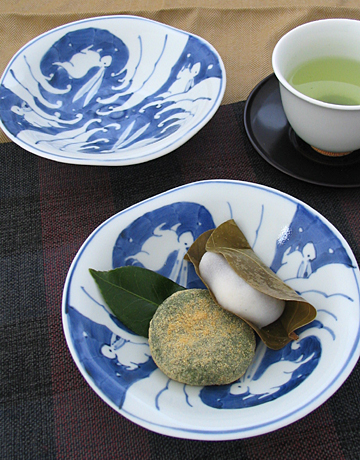 ← お料理の盛鉢、盛皿には勿論のこと、銘々皿に使ったりデザート皿にも良いですね。 染付けの器は和菓子にも似合いますよ。